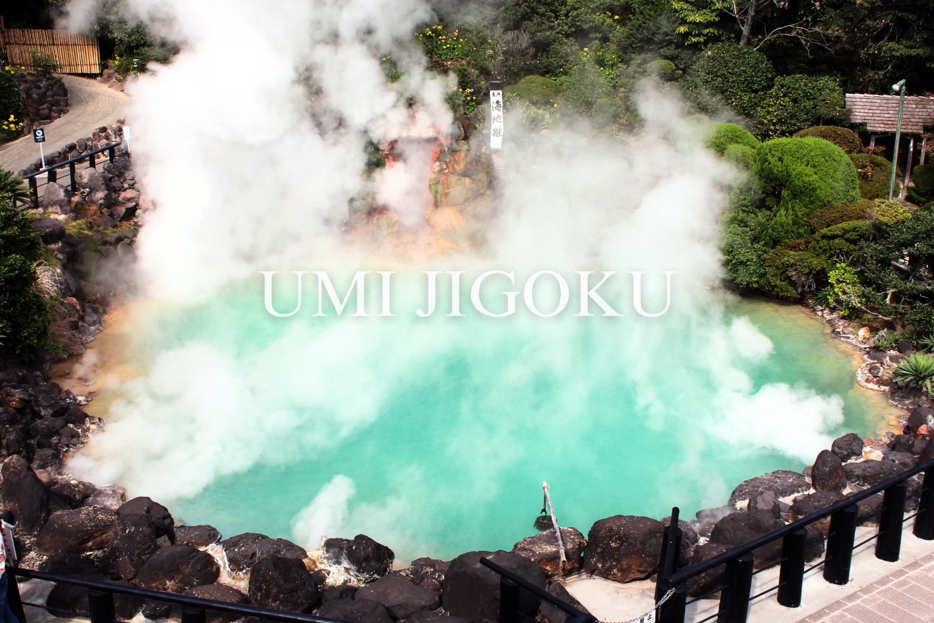 자줏빛 철(황산철)이 포함된 수질로 인해 마치 바다처럼 짙은 푸른 빛을 띕니다. 물이 98℃인데, 보는 것만 해도 시원한 착각이 듭니다